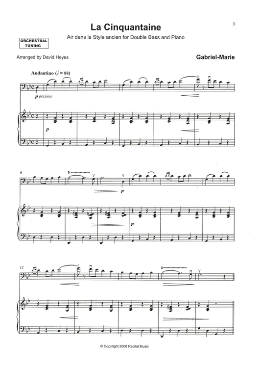 Gabriel-Marie: La Cinquantaine for Double Bass & Piano (arr. David Heyes)