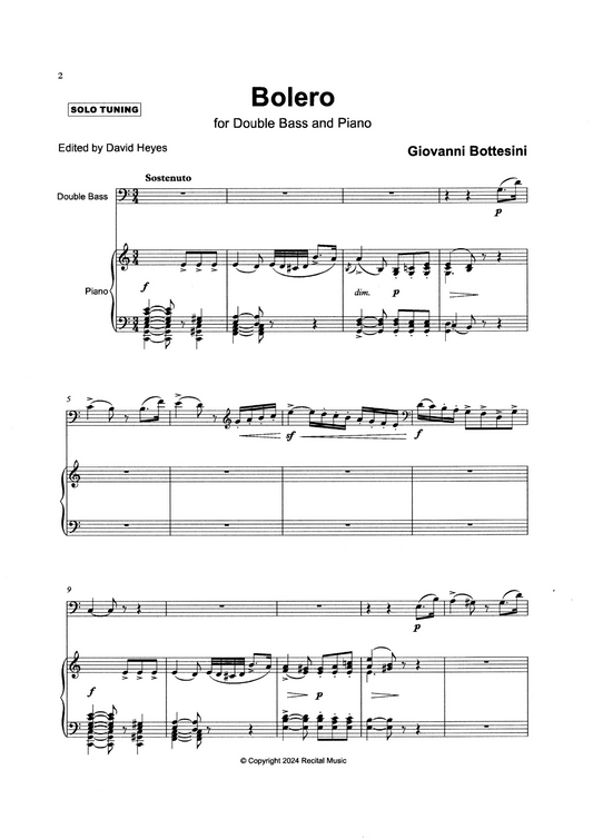 Bottesini: Bolero for double bass & piano (ed. David Heyes)