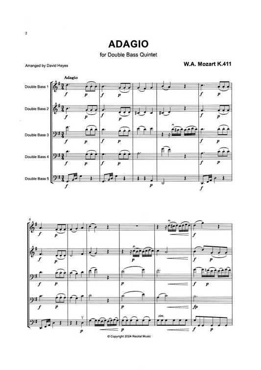 W.A. Mozart: Adagio K.411 for double bass quintet (arr. David Heyes)