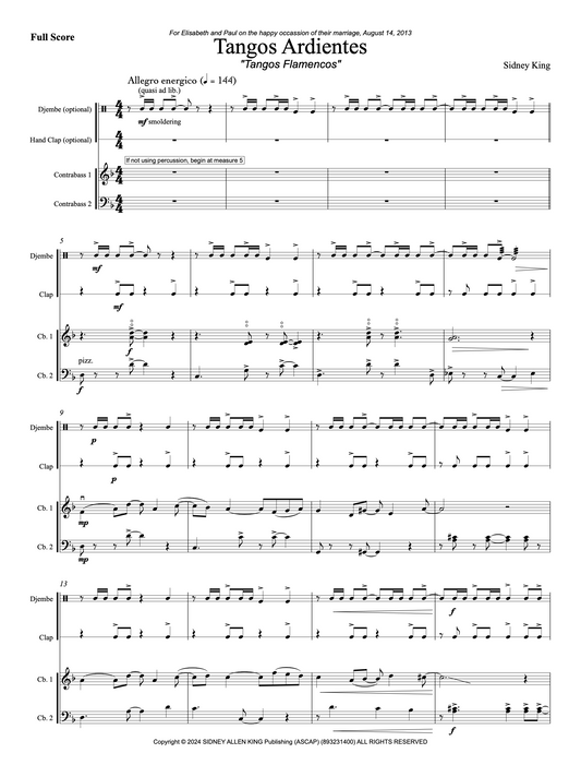 Sidney King: Tangos Ardientes for two double basses & percussion (optional)