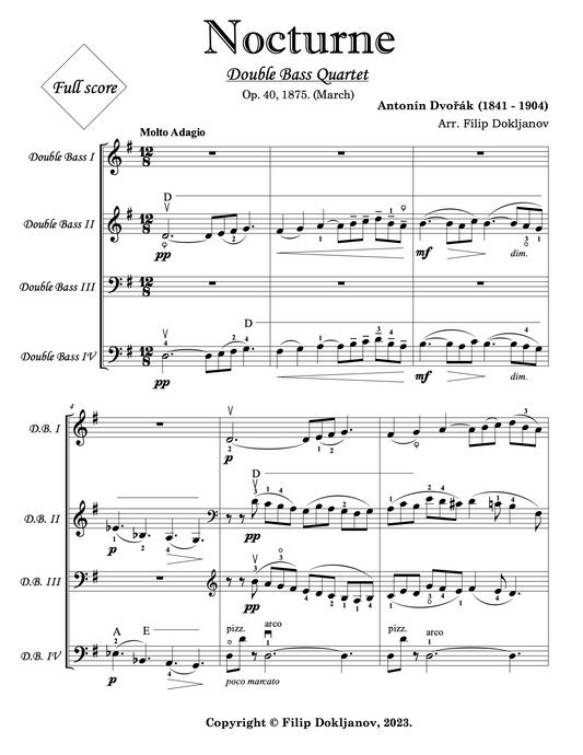 Dvořák: Nocturne in B Major Op. 40 arranged for double bass quartet (Dokljanov)