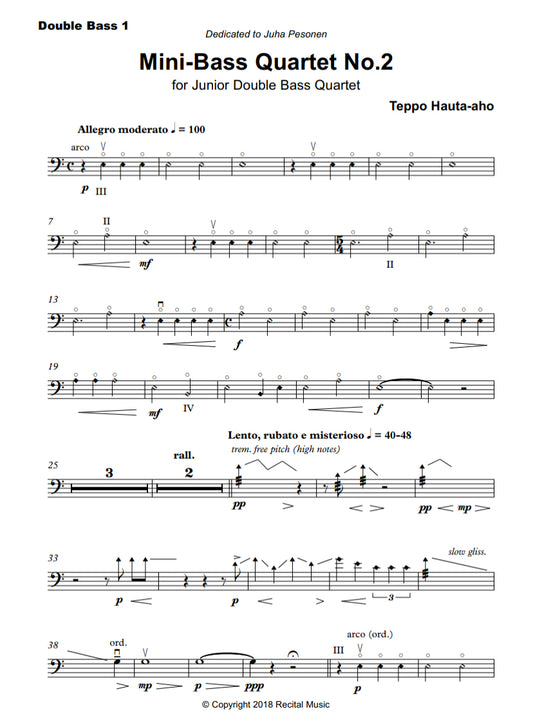Teppo Hauta-aho: Mini-Bass Quartet No. 2 for Junior Double Bass Quartet