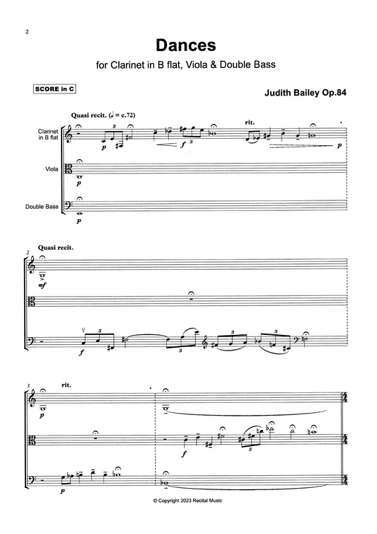 Judith Bailey: Dances Op.84 for clarinet in B flat, viola & double bassVendor:David HeyesRegular price $10.00 USDRegular priceUnit price per-