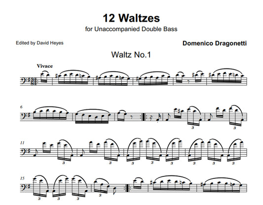 Domenico Dragonetti: 12 Waltzes for unaccompanied double bass (edited by David Heyes)Vendor:David HeyesRegular price $10.00 USDRegular priceUnit price per-