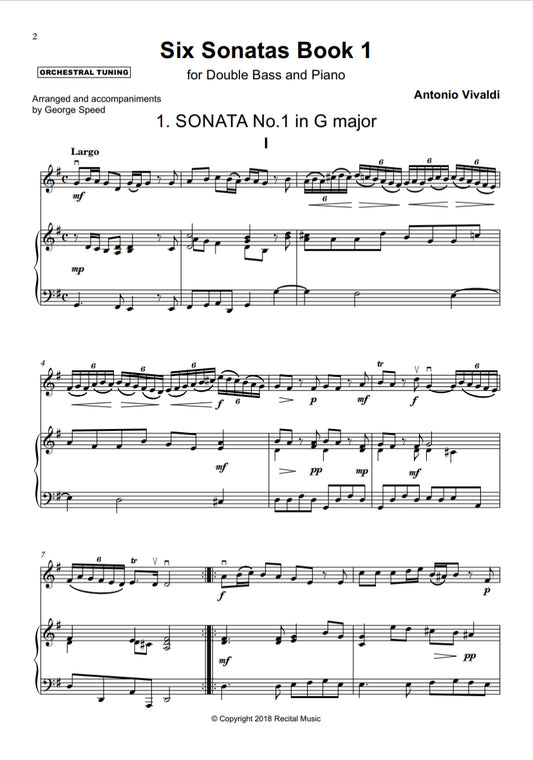 Antonio Vivaldi (arranged by George Speed): Sonatas 1-6 for double bass & piano (Orchestral Tuning)Vendor:David HeyesRegular price $15.00 USDRegular priceUnit price per-