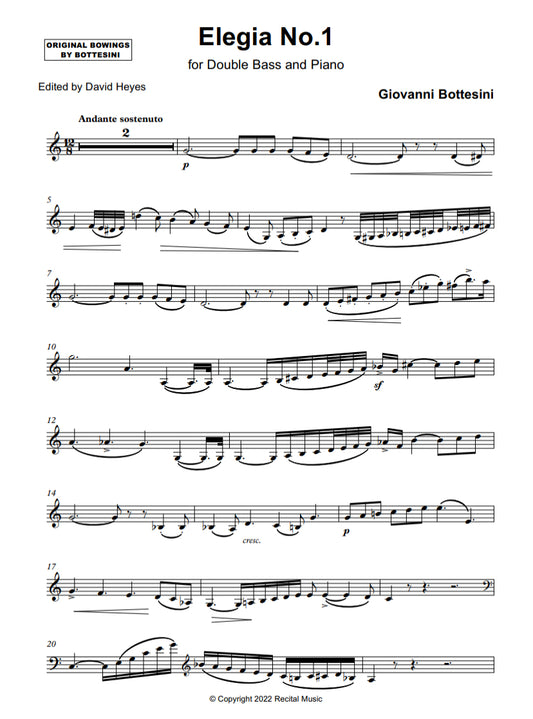 Bottesini: Elegia 1, 2, & 3 for double bass and piano (edited by David Heyes)Vendor:David HeyesRegular price $20.00 USDRegular priceUnit price per-