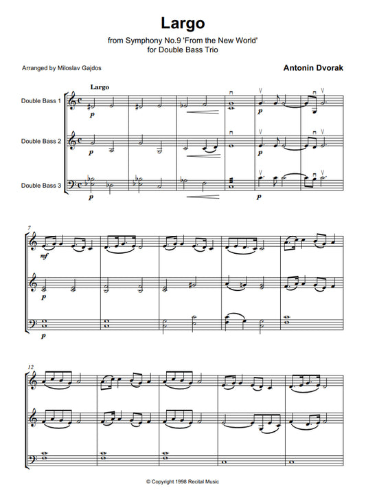 Antonín Dvořák: Largo (Symphony No.9 'From the New World') for double bass trio (arranged by Miloslav Gajdoš)Vendor:David HeyesRegular price $10.00 USDRegular priceUnit price per-