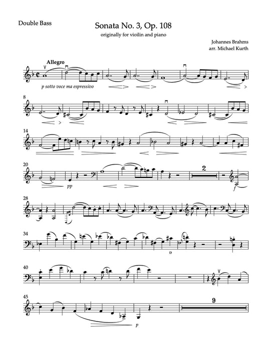 Brahms: Violin Sonata No. 3, Op. 108 in D Minor for double bass and piano (Kurth)