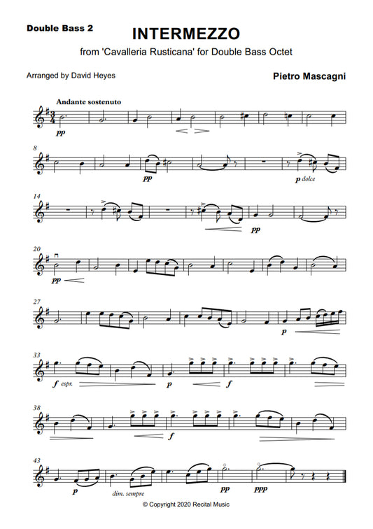 Opera Nights: Music by Mascagni, Puccini & Verdi for double bass octet (arranged by David Heyes)