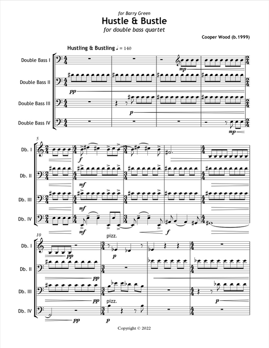 Cooper Wood: Hustle & Bustle for double bass quartet