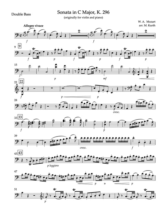 Mozart: Sonatas for Double Bass and Piano, Volume I (arr. Kurth)