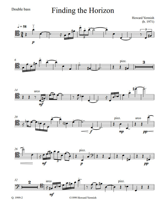 Howard Yermish: Finding the Horizon for Double Bass and Piano/Harp