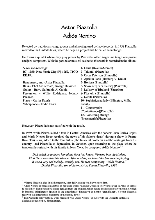 Piazzolla: Adiós Nonino for String Quintet (arr. Soteldo)