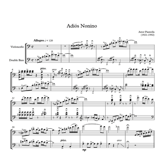 Piazzolla: Adiós Nonino Duo for violoncello and double bass (ed. Soteldo)