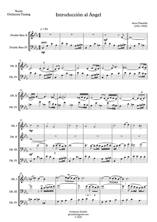 Piazzolla: Introducción al Ángel for double bass quartet (Soteldo)