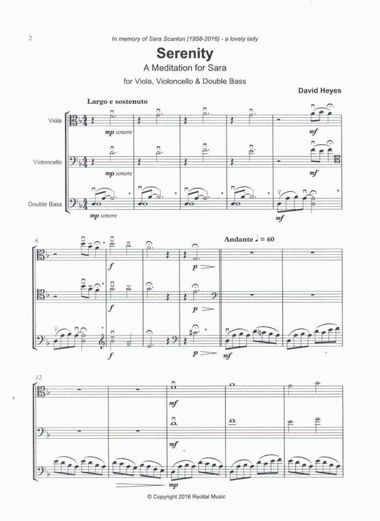 David Heyes: Serenity - a Meditation for Sara for Viola, Violoncello & Double Bass