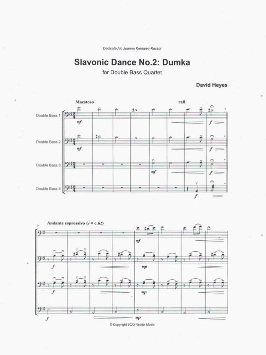 David Heyes: Slavonic Dance No. 2: Dumka for double bass quartet