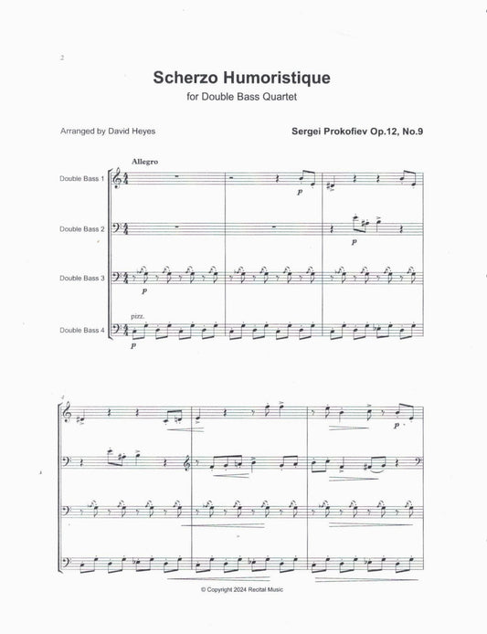 Prokofiev: Scherzo Humoristique Op. 12, No. 9 for double bass quartet