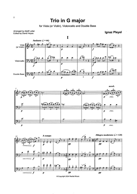 Ignaz Pleyel: Trio in G major for viola (or violin), violoncello & double bass (arr. Adolf Lotter)