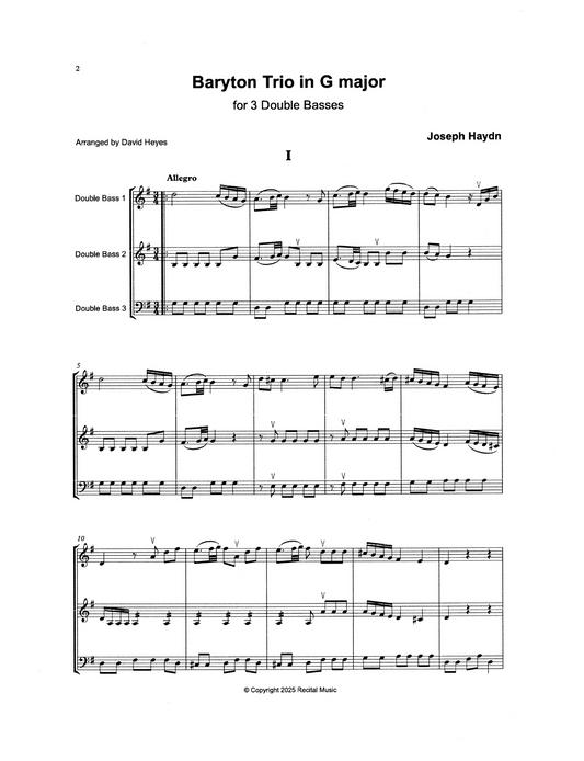 Joseph Haydn: Baryton Trio in G major for 3 double basses (arr. Heyes)