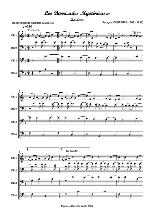 Couperin: Les Barricades Mystérieuses, for double bass quartet (arr. Messina)