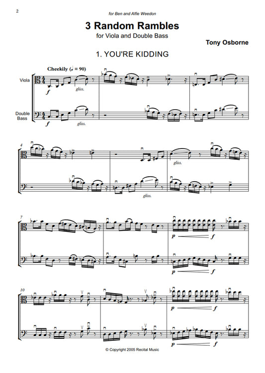 Tony Osborne: 3 Random Rambles for Violin (or Viola) & Double Bass