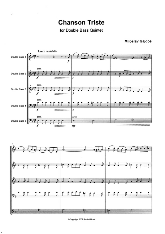 Miloslav Gajdos: Chanson Triste for double bass quintet