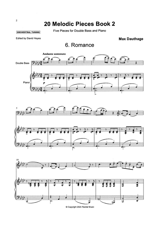 Max Dauthage: 20 Melodic Pieces Book 2 for double bass & piano