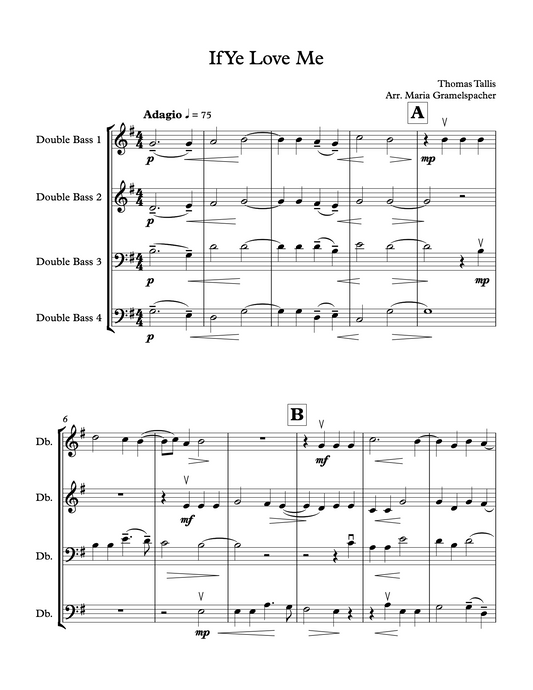Thomas Tallis: If Ye Love Me for double bass quartet (arr. Maria Gramelspacher)