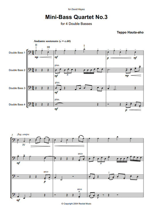 Teppo Hauta-aho: Mini-Bass Quartet No.3 for 4 double basses