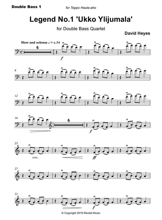 David Heyes: Legend No.1 'Ukko Ylijumala' for double bass quartet