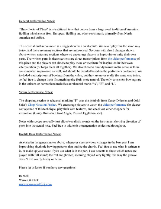 Three Forks of Cheat: Traditional American for double bass and violin (arr. by Warren & Flick)