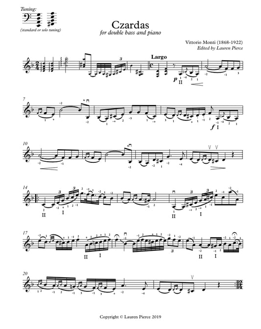 Monti: Czardas for double bass and piano (arr. by Lauren Pierce)