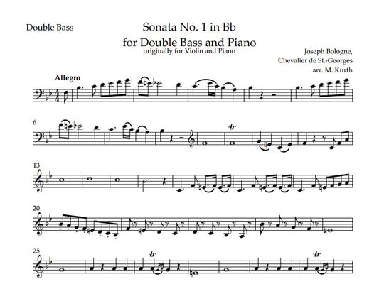 Joseph Bologne: Sonata No. 1 in Bb for Double Bass and Piano