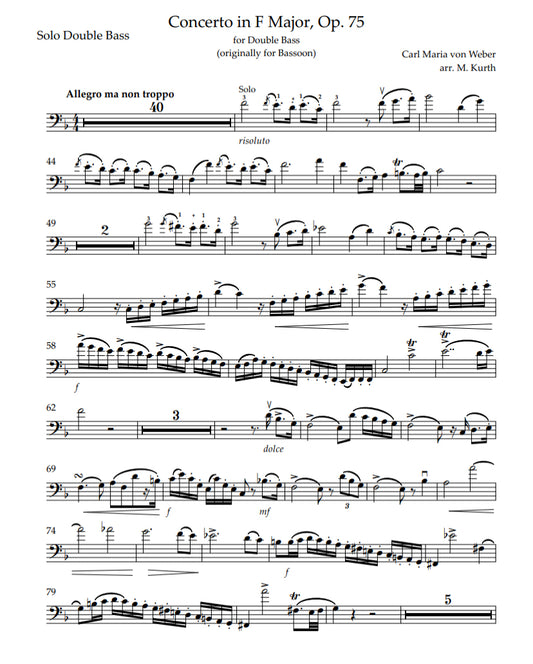 Weber: Concerto in F Major, Op. 75 for double bass and piano (originally for bassoon) arr. by M. Kurth