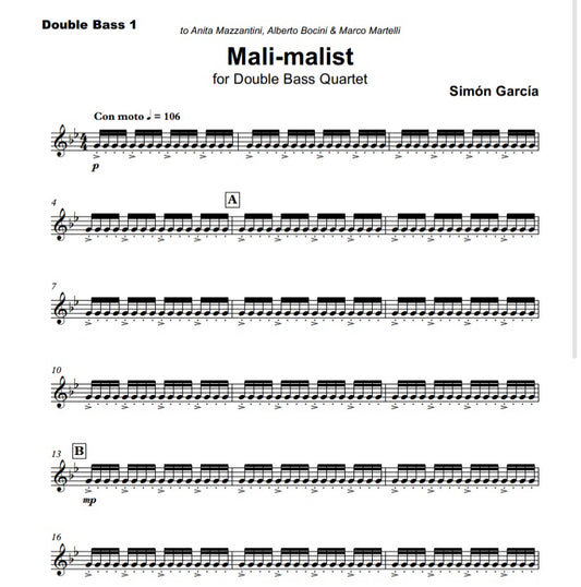 Simón García: Spanish Sounds for an American Friend for double bass quartet