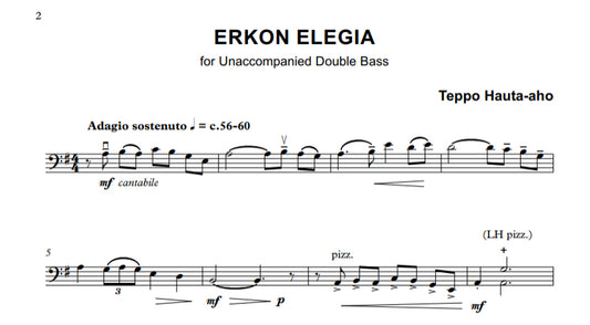 Teppo Hauta-aho: Erkon Elegia for unaccompanied double bass or double bass ensemble