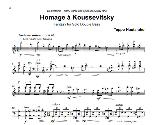 Teppo Hauta-aho: Homage à Koussevitsky for unaccompanied double bass