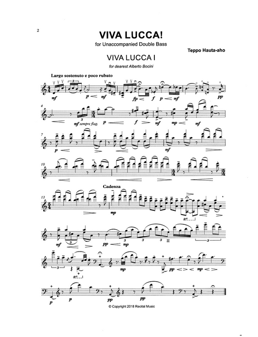 Teppo Hauta-aho: Viva Lucca! for unaccompanied double bass