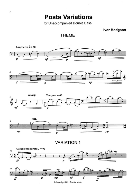 Ivor Hodgson: Posta Variations for unaccompanied double bass