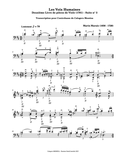 Marin Marais: Les Voix Humaines for solo double bass (arr. Calogero Messina)
