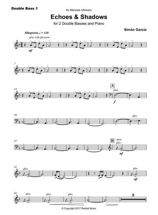 Simón García: Echoes & Shadows for 2 double basses & piano