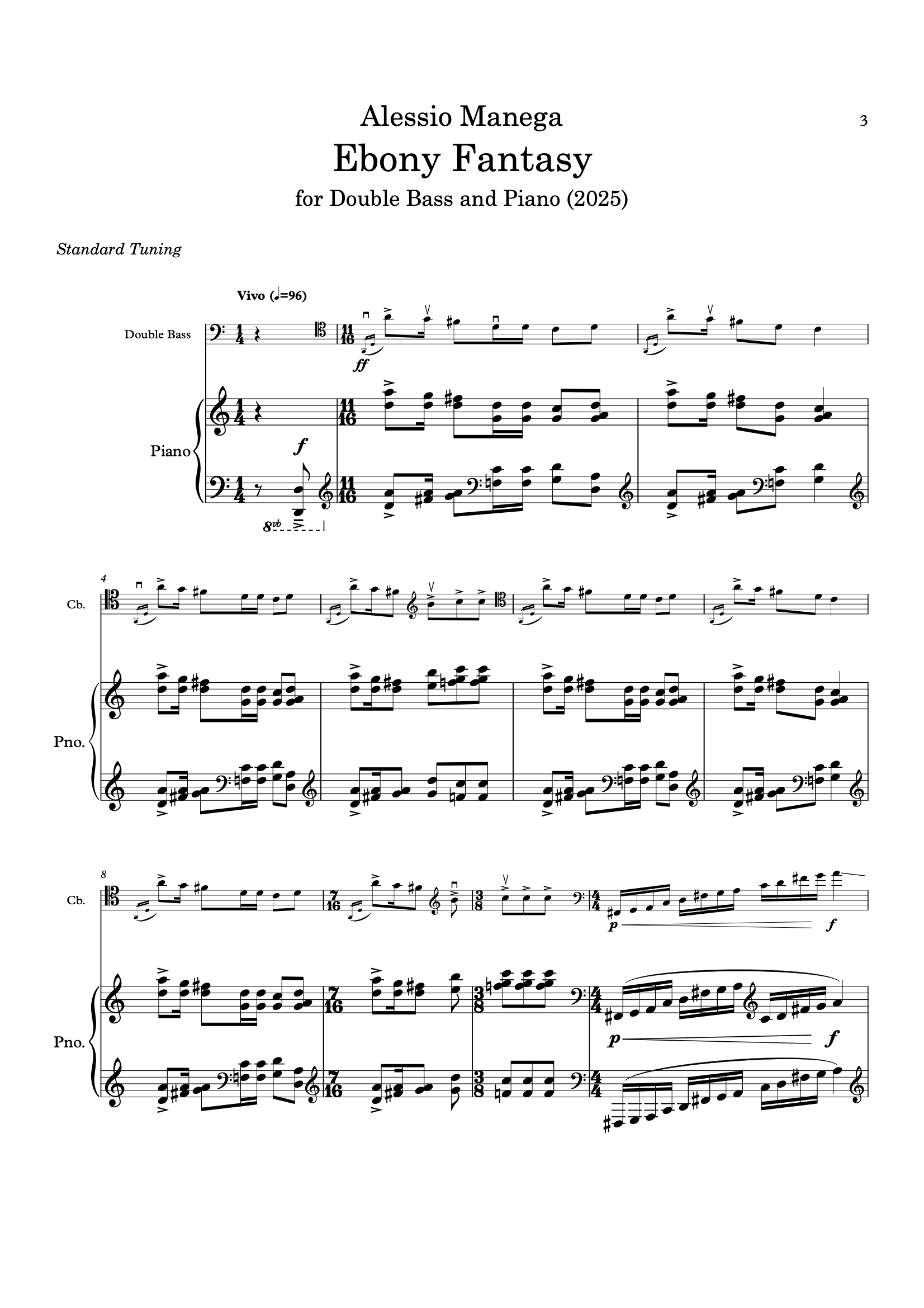 Alessio Manega: Ebony Fantasy for double bass and piano