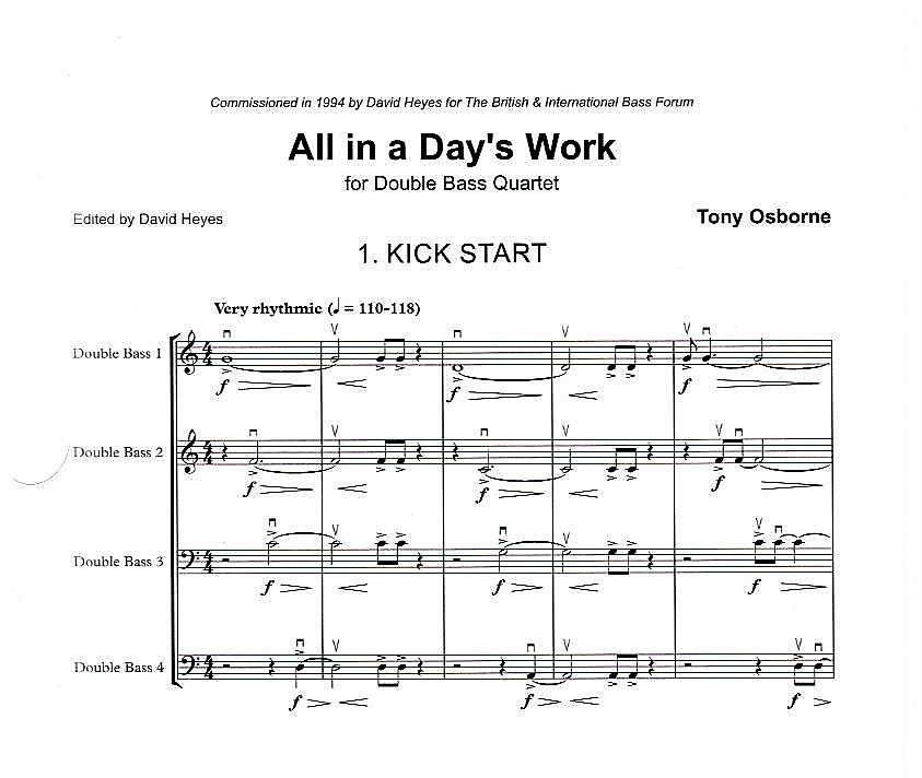 Tony Osborne: All in a Day's Work for double bass quartet