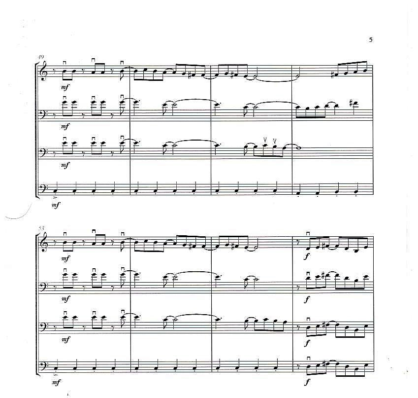 ‘All in a Day’s Work is an exciting new piece to add to the growing body of literature, and definitely worthy of a reading. My own students recently formed a bass quartet ensemble at Miami University, and were very excited about performing this piece after our first reading. It has an immediate accessibility and energy that is contagious among the players, as well as for the audience – always a beautiful combination. The music is a challenge, but not too difficult for a college ensemble to have fun with and give a successful performance.’ (ISB)