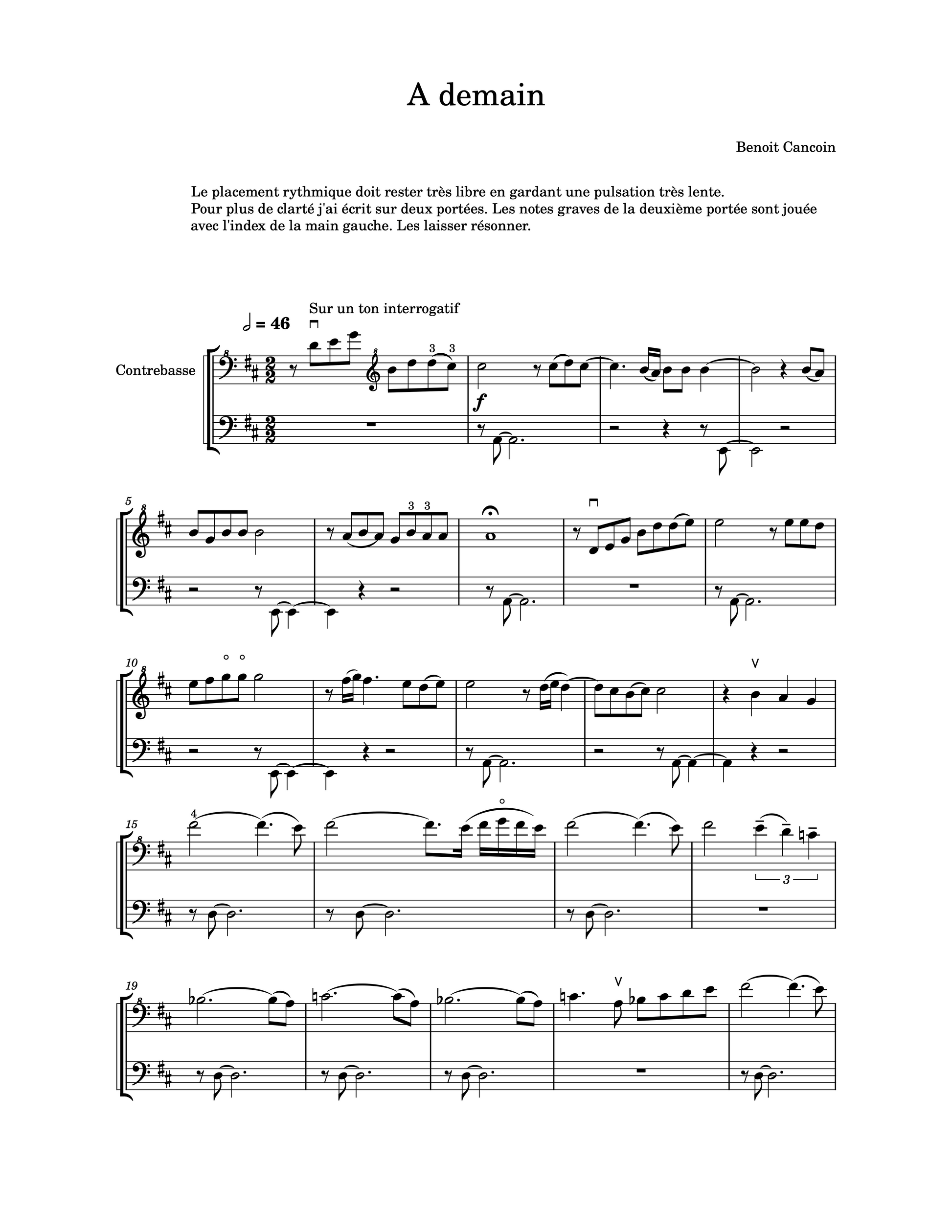 Benoit Cancoin: A Demain for solo double bass