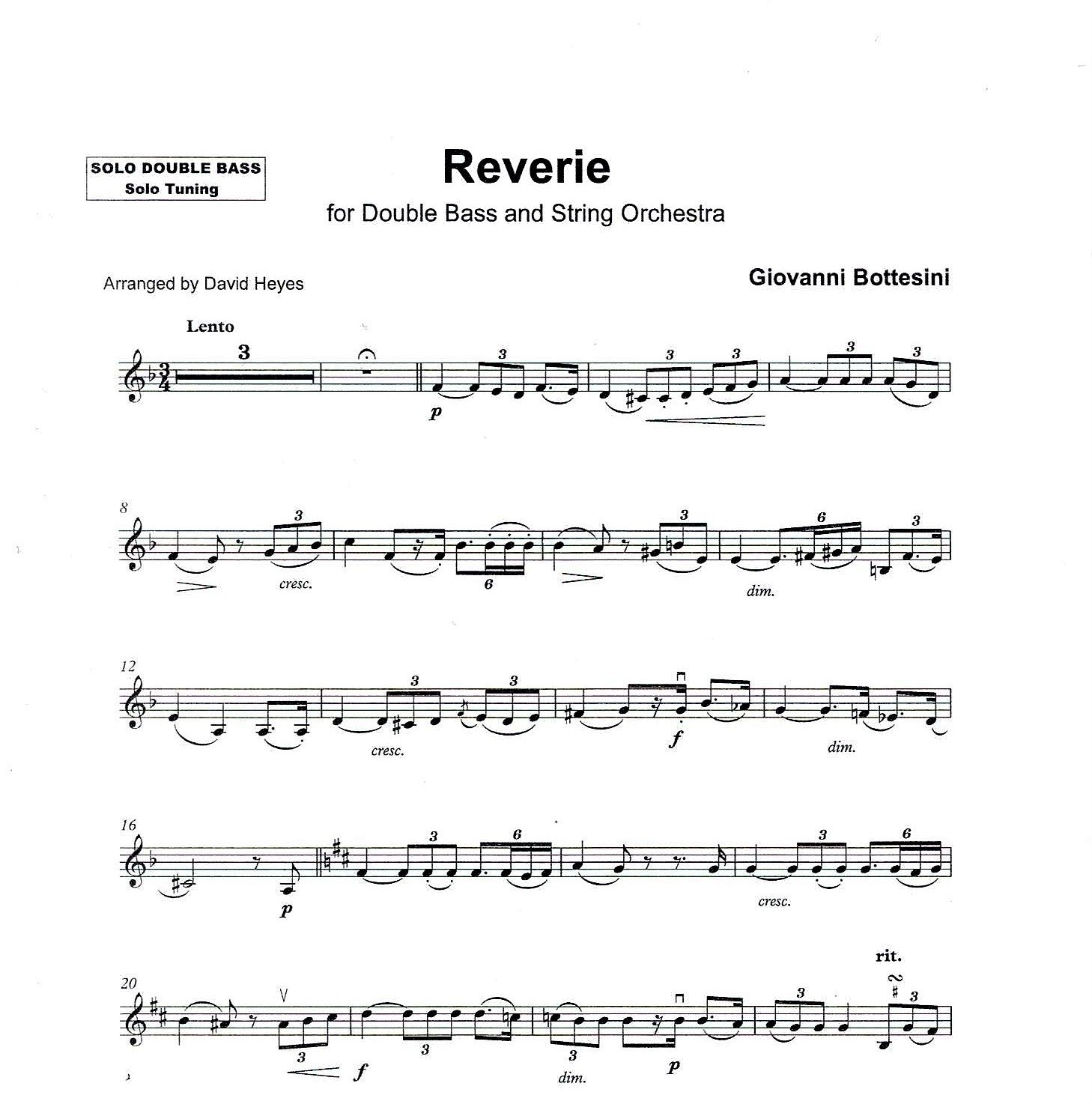 Reverie is lyrical and evocative, essentially a ‘song without words’ and is ideal for the progressing intermediate bassist who is confident playing in thumb position. The music is passionate and dramatic, tender and poignant, and is a wonderful into Bottesini’s world of lyrical and melodic solos.