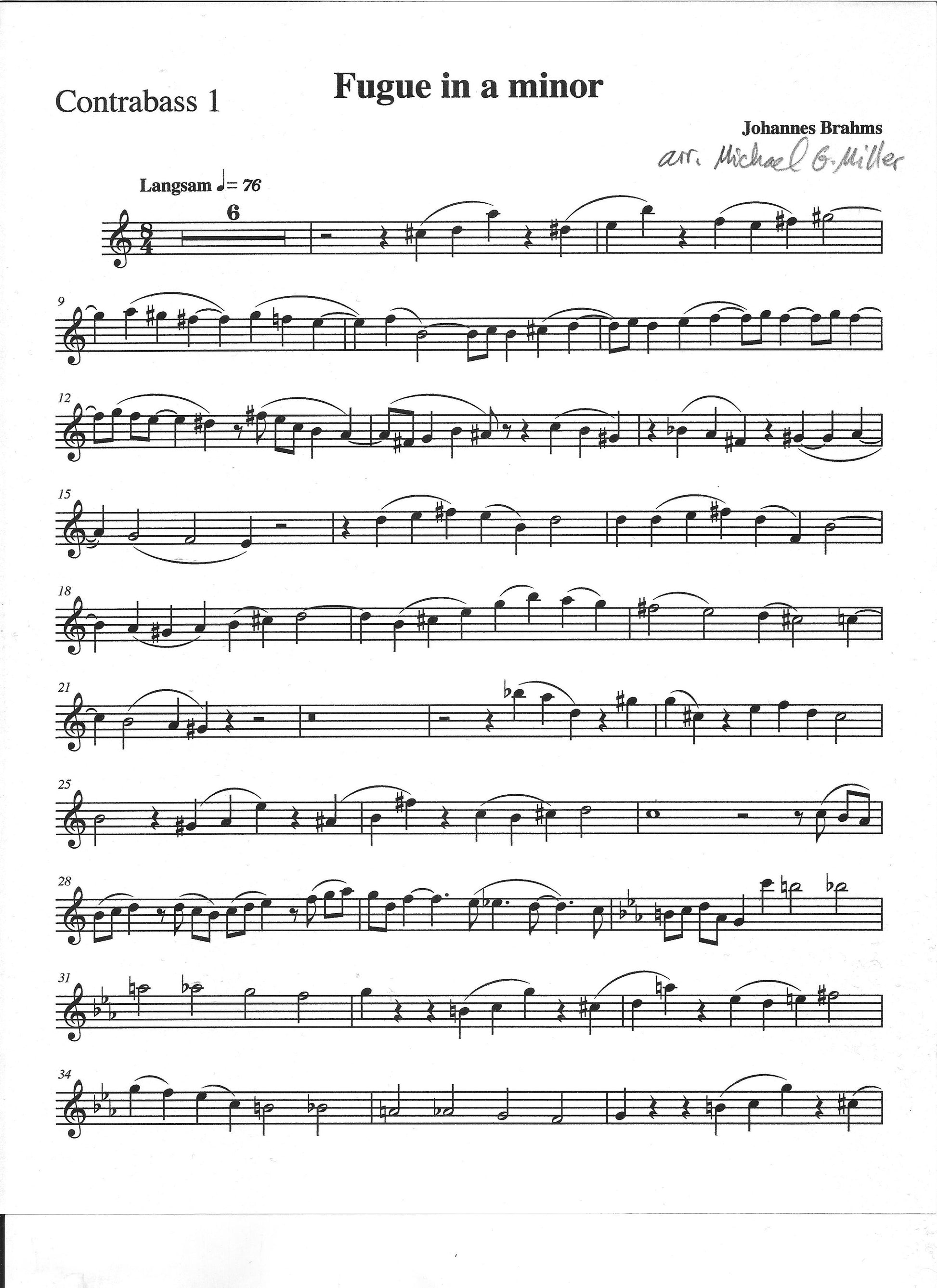 Brahms: Fugue in A minor for double bass quartet based on the organ fugue in A-flat minor (arr. by Michael G Miller),