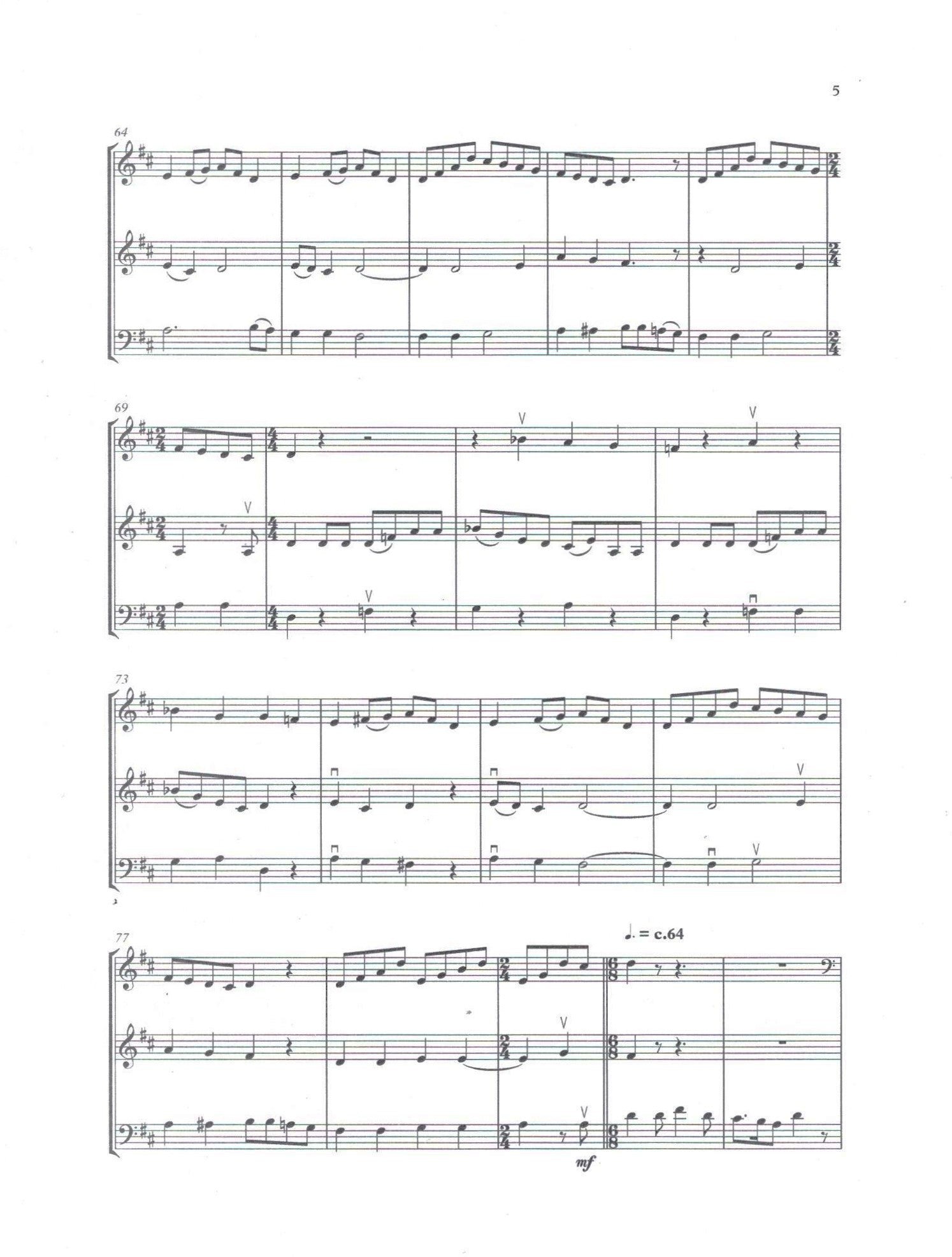 Ideal as both study or concert repertoire, these two short dances are lyrical and engaging, offering ideal ensemble music for the intermediate trio. Both are in waltz-styles, are tonal and traditional, and were composed in 2006.