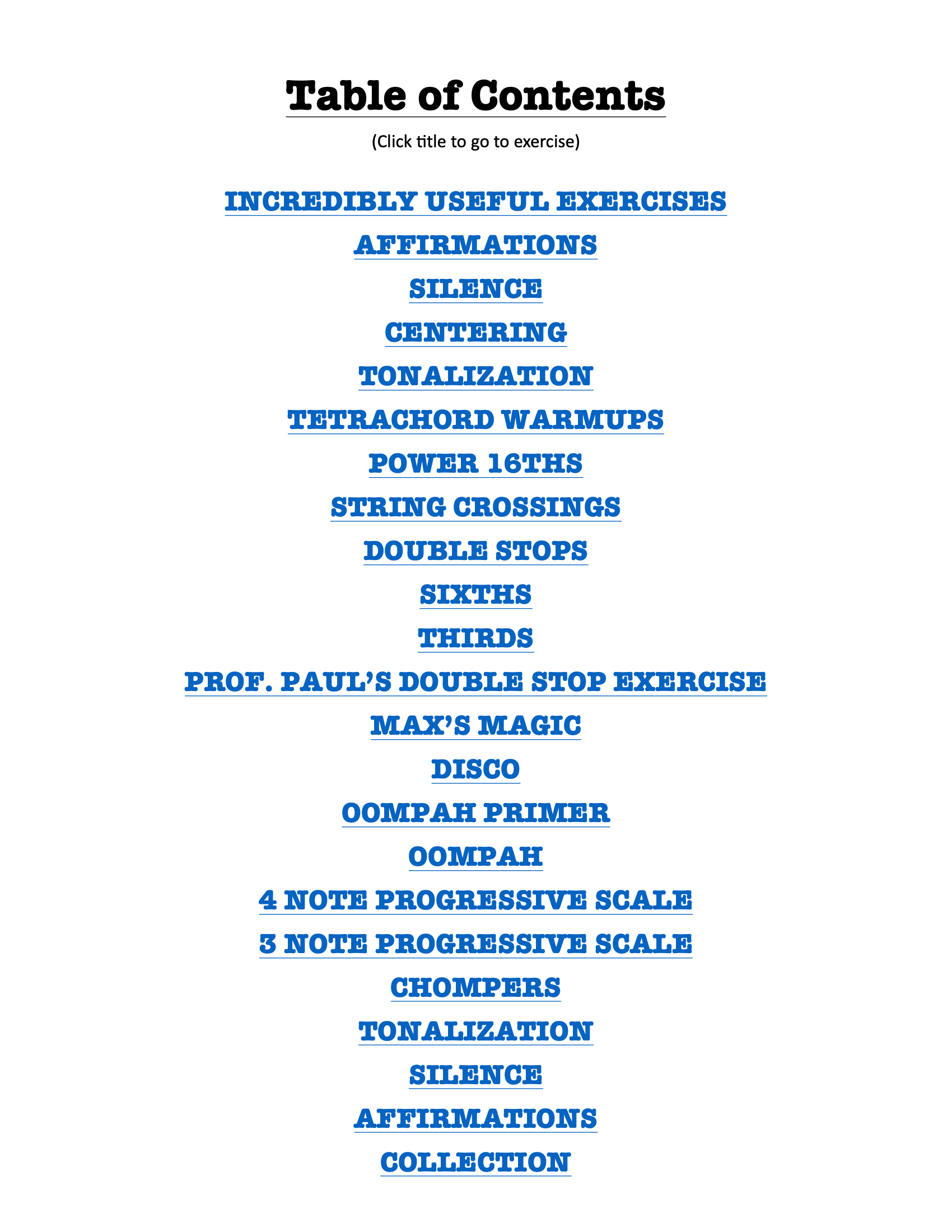 Volume 12, Power focuses on exercises that demand and develop strong primary and supportive muscular development in both arms. Strong support muscles in the arms and hands promote a powerful tone, louder volume, and greater endurance. The workout builds habits that will add power and volume to all other exercises in your arsenal and will carry over naturally to all public and critical performances. Number 12 in a 17-part series of focused workouts.